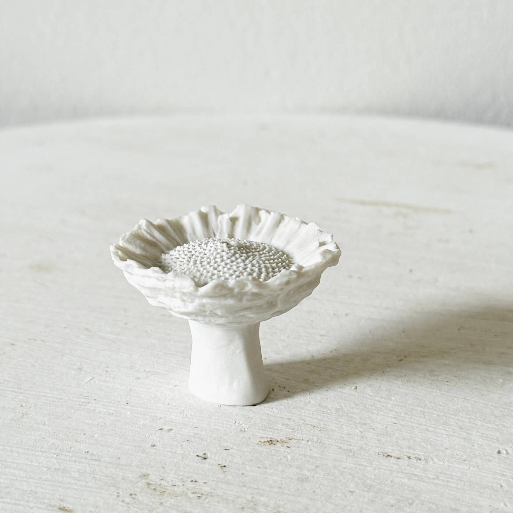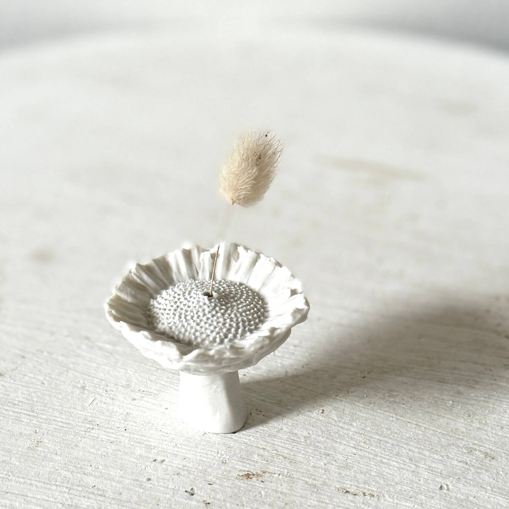 Protea Rosette als vaasje/wierookhouder gegoten van porselein.