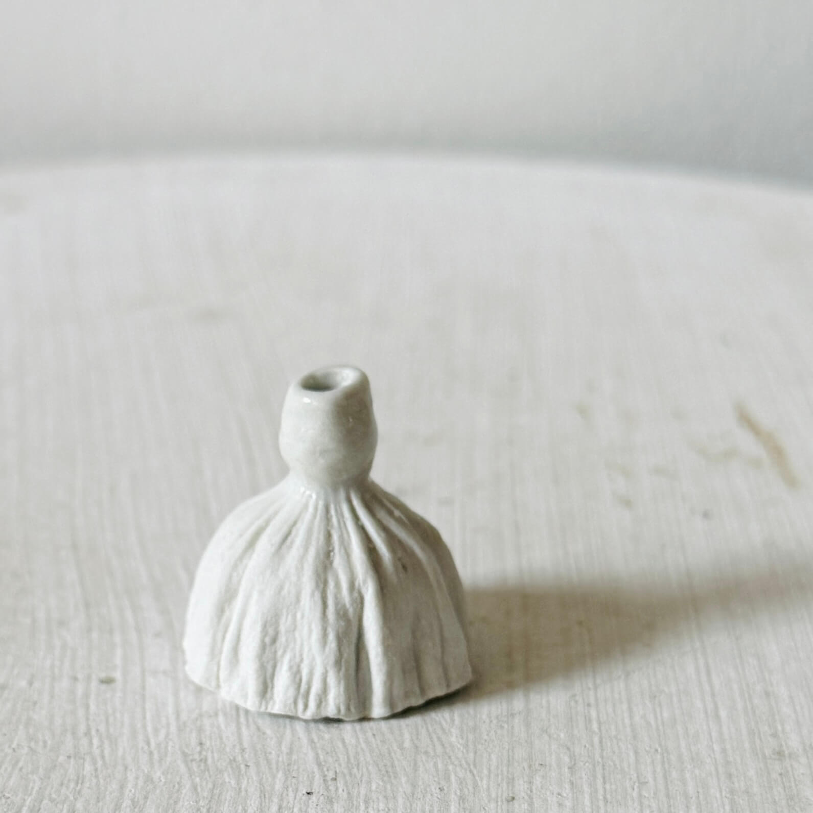 Een in porselein gegoten Lotus te gebruiken als wierookhouder of vaasje voor een gedroogd takje.